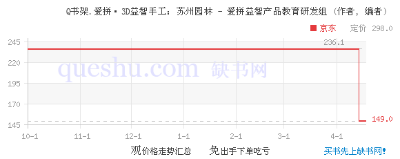 苏州园林是中国南方建筑的典型代表。它外观秀美、布局精巧、历史悠久、内涵丰富,与北方建筑形成鲜明的对比,是中国南方建筑特色乃至南方文化的缩影。《Q书架.爱拼·3D益智手工:苏州园林》包括立体拼图和精美图册两部分。立体拼图成品超级仿真,充分体现苏州园林一步一景的建筑特色;精美图册中不仅有苏州园林的历史、建筑特色、历史故事等内容,还有对于苏州这个城市的介绍,更可了解相关设计师的信息。产品尺寸:82.5cm*50.8cm*26.5cm