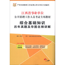 一、精选真题,熟知考情。《华图·江西省事业单位公开招聘工作人员考试专用教材:综合基础知识历年真题及华图名师详解(2013最新版)》汇集了2 010—2012年江西省事业单位招聘考试各个岗位的《综合基础知识》真题,能够使考生根据真题全面了解考情,做到从容备考。