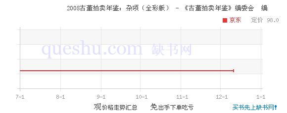 《2008古董拍卖年鉴:杂项(全彩版)》是《2008古董拍卖年鉴》其中之一的杂项卷。《2008古董拍卖年鉴:杂项(全彩版)》内文条目原则上保留了原拍卖记录,按拍品号、朝代、品名、估价、成交价、尺寸、拍卖公司名称、拍卖日期等排序。