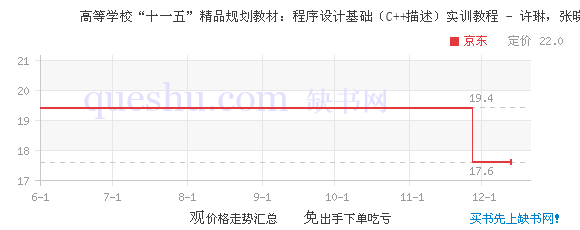《高等学校“十一五”精品规划教材:程序设计基础(C++描述)实训教程》旨在培养学生的结构化编程思想和实践操作能力,注重基础、强调方法、突出应用、强化实践。 《高等学校“十一五”精品规划教材:程序设计基础(C++描述)实训教程》共分为6章,包含14个实训项目。每个实训项目均采用初学编程的最佳路径——“示范”+“模仿”+“变”的实践模式,针对各知识点设置了多个“示范任务”、“同步任务”和“提高任务”,并给出相应的自测练习,所有实训项目参考答案均可到网上下载。书中还介绍了Visual C++IDE调试工具的基本使用,提供了Visual C++6.0常见编译错误信息及常用的C++库函数,给出了两套程序设计基础模拟试题及参考答案。本书最后还给出了一套实训报告手册模板,便于学生自测与教师检查。 《高等学校“十一五”精品规划教材:程序设计基础(C++描述)实训教程》可作为各类大专院校程序设计基础课程的实训教材,也可作为程序设计爱好者与自学者的实践参考书。