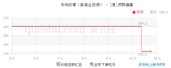 《宋诗纪事》是古代收集宋代诗歌规模宏大的一部著作,计100卷,作家3800余人。厉鄂广搜宋人文集、诗话、笔记以至山经、地志等各类典籍,钩稽发掘,"苟片言之足采,虽只字以兼收"。《宋诗纪事》除辑存宋代诗歌,标明出处外,还附有一些作家的小传,缀以评论,是对宋代诗歌的首次全面摸查,对了解有宋一代诗歌创作情况大有帮助。此次整理之《宋诗纪事》根据乾隆十一年厉氏樊榭山房刊本标点整理。附四角号码人名索引和笔画检字。