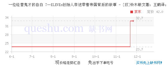 1973年,他一脚踢开日本零售业的大门,对当时崇尚“商铺就该越大越好”的业界宣布:从今以后,零售业的玩法改变了。 这个从不以寻常角度看待事物的怪咖,在总部不看好的情况下自行筹资一半,将濒临破产的7-ELEVEn从美国带回日本,带着通过报纸招募到的15名门外汉,一路将它发展为全球大的连锁便利集团。 他漠视常规,挑战常理。无论是开辟新业务,还是推出新产品,他总能在一片反对声中创造奇迹。 他是继松下幸之助之后的日本新经营之神,也是乔布斯眼中特立独行、改变寻常事物的疯子。 他是铃木敏文,零售帝国7-ELEVEn的缔造者,一个偏执、大胆、想到就一定要做到的日本人。不善言辞的性格、骨子里的狠劲、异于常人的市场嗅觉、排除万难也要坚持正确事物的执念,在他身上奇怪又难得地聚为一体。 《一位经营鬼才的自白 7—ELEVEn创始人亲述零售帝国背后的故事》犹如与鬼才铃木的促膝长谈,面访铃木的第一手资料被整理者原汁原味地呈现。如何打造热销品,如何权衡新事业的风险,如何提升说服力,如何管理下属、领导企业,关于经营方方面面的秘诀,在铃木的亲身讲述中被一一道尽。