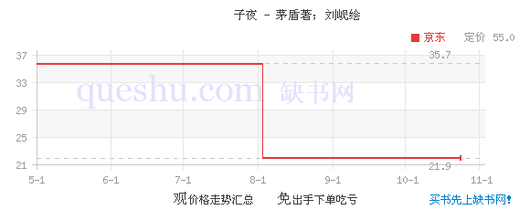 《子夜》为中国现代著名作家茅盾的长篇小说代表作,是中国第1部写实主义的成功的长篇小说。《子夜》创作于1931至1932年间,初名《夕阳》。1933年1月,上海开明书店初版《子夜》。1934年,《子夜》因“犯禁”被迫删去第四章和第十五章后再版。1952年,人民文学出版社据开明书店原纸型重版完整的《子夜》。1954年,人民文学出版社又出版了为适应“社会主义文学审美”而修订的《子夜》,此版本后成为通行本。