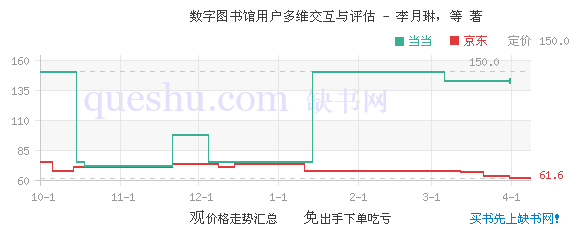 本书是李月琳教授回国后出版的首部专著,也是李月琳教授主持的国家社会科学基金项目“基于用户多维交互行为的数字图书馆可持续发展评估模型与实证研究”的部分研究成果。本书从数字图书馆用户与数字图书馆系统之间的多维交互行为的角度,构建数字图书馆交互评估模型,具有很强的针对性,有助于用户从人机交互这一视角,全方位地审视数字图书馆的绩效,从而改善数字图书馆的设计,不断完善数字图书馆的开发和建设。本书向读者展示了数字图书馆用户与数字图书馆系统之间交互的理论模型与评估工具,强化了基于评估的数字图书馆可持续发展理念,极具实践应用价值。文后还附有研究过程的设计的各种问卷,如用户与数字图书馆交互问卷,实验任务设计(针对数字图书馆用户),实验任务设计(针对数字图书馆专家),数字图书馆交互评估问卷,极具参考价值。