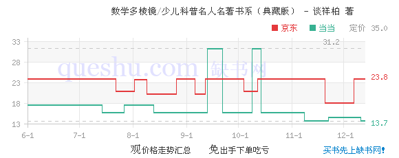 《数学多棱镜》:本书中,谈祥柏教授用数学家的眼光发现数学中富有趣味的课题。从微观层面而言,每一篇文章都从故事或者情景切入,进而介绍相应的数学知识或推理过程,循序渐进,让读者具有极强的代入感;从宏观层面而言,本书内容包罗万象,有数学人物故事、数学魔术与戏法、数与数的变换、巧解妙题提高智力等,可谓多题型、多角度,全方位展现数学魅力,引领青少年爱上数学。